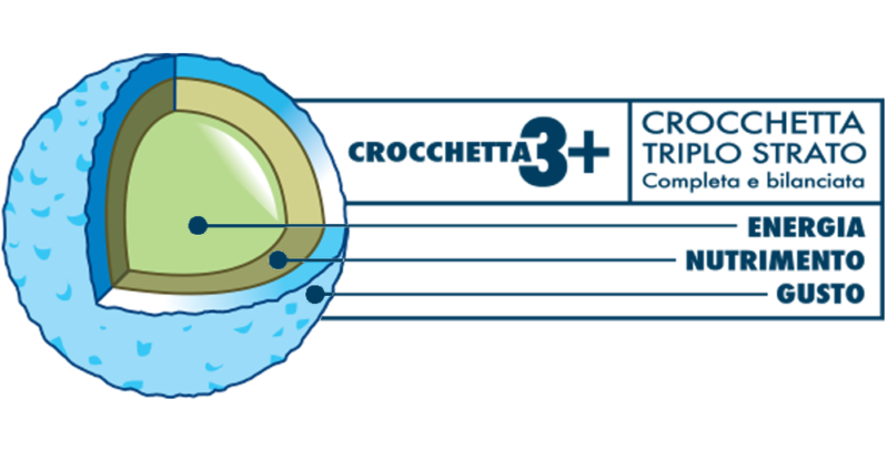 La nostra esclusiva crocchetta “Triplo strato” prevede tempi di cottura differenziati per le diverse materie prime al fine di ottenere un'elevata digeribilità degli amidi. Inoltre, la miscelazione a freddo delle proteine animali, delle sostanze minerali e delle vitamine, preserva al meglio le loro caratteristiche nutrizionali e organolettiche, evitando di sottoporre questi ingredienti ad un ulteriore trattamento termico.